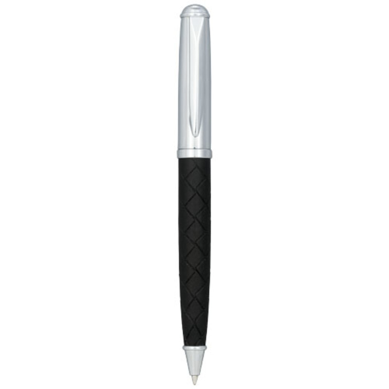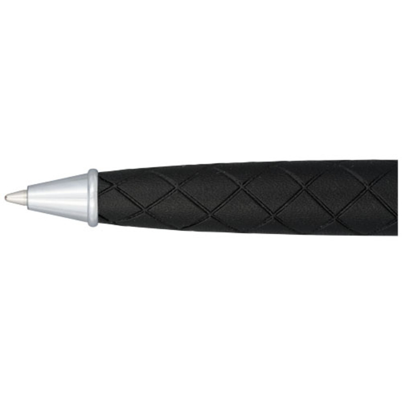 Exclusively designed ballpoint pen with leather wrapped lower barrel featuring a cross line pattern. Includes a premium black refill and packed in a ''LUXE'' gift box (16x4.5x2.5cm).