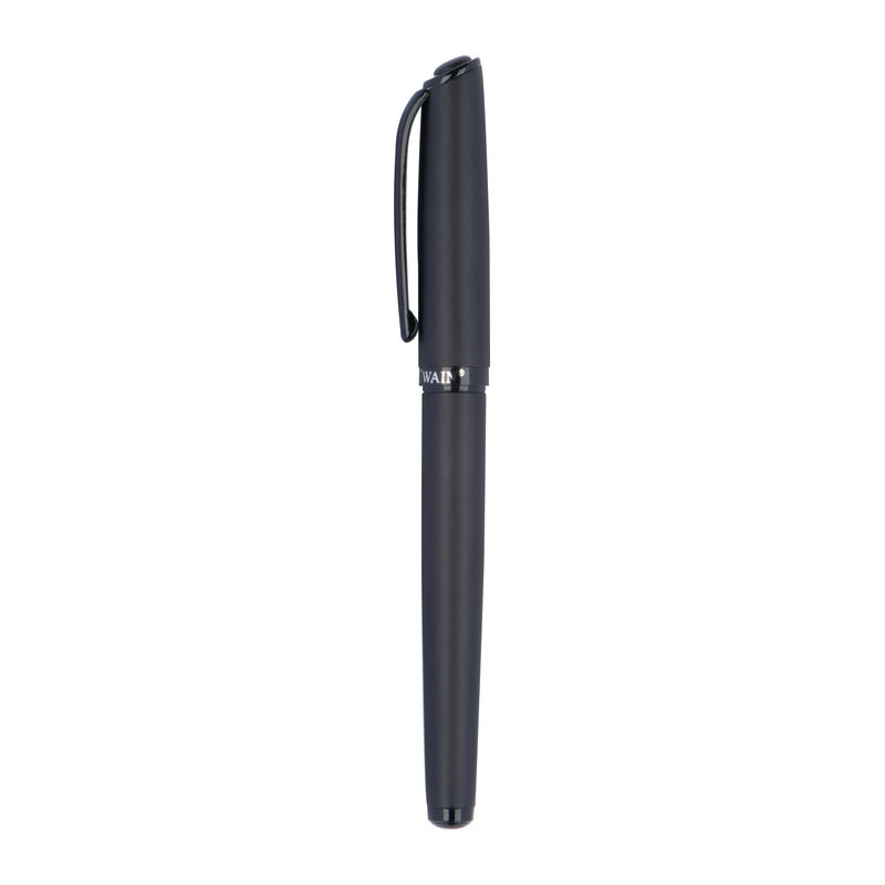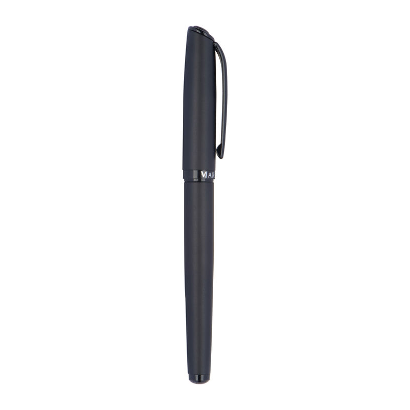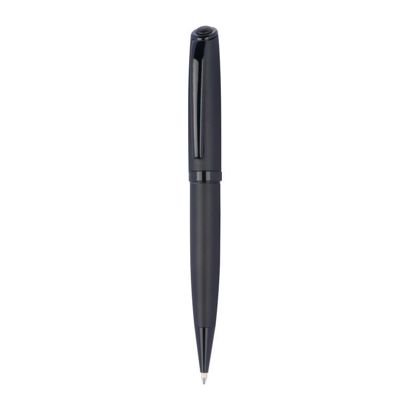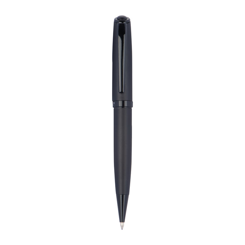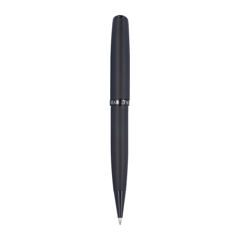 Mark Twain writing set consisting of a twist pen and a rollerball made of metal with a black, matt barrel and shiny black applications, packed in a gift box. Your logo will be engraved on both writing instruments.