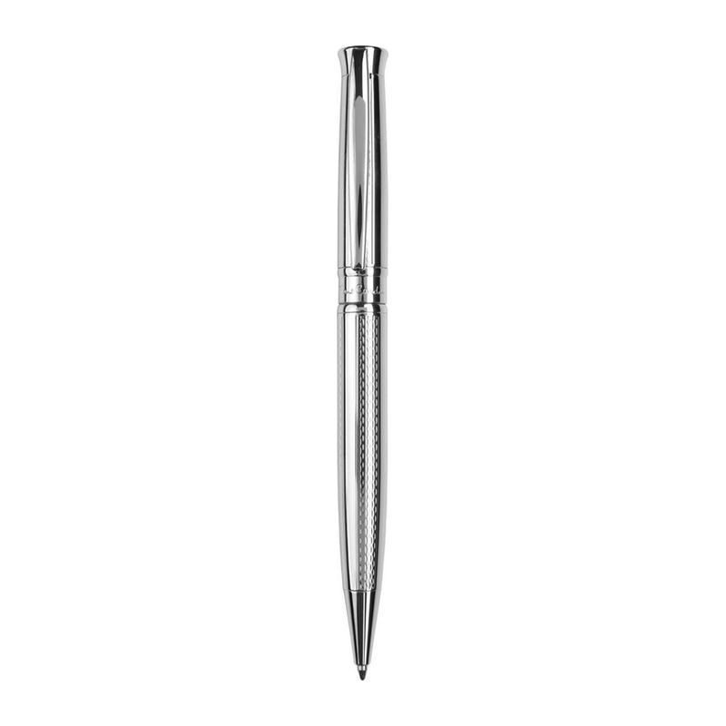 Ballpoint has a very elegant shape and fine engraving over the entire surface, a twist action mechanism and a quality refill in blue with a 1 mm tip. A black ink supplementary refill is included. The ball pen Roi is presented in an elegant PIERRE CAR