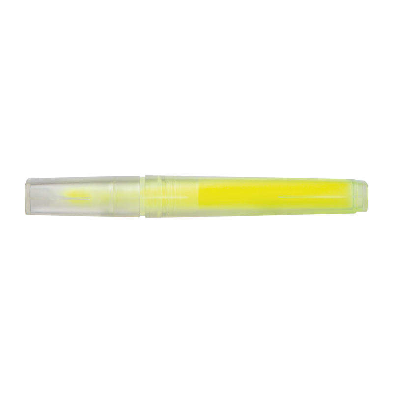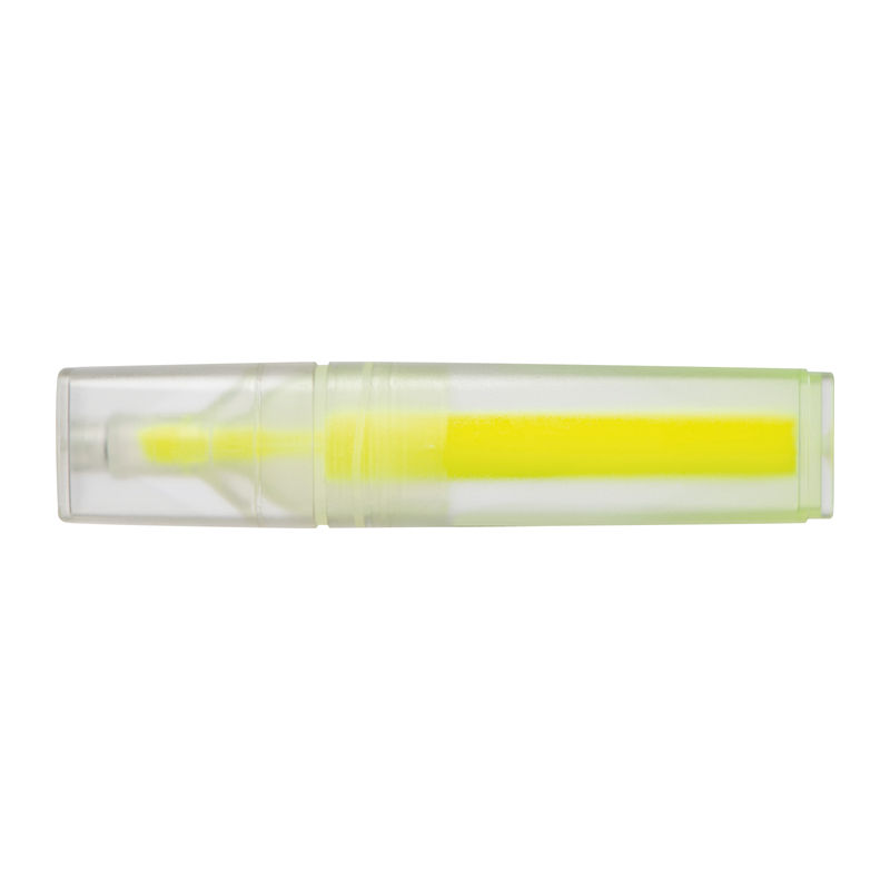 Highlighter made from recycled plastic with yellow marking colour in a transparent casing. We print your logo on the casing.