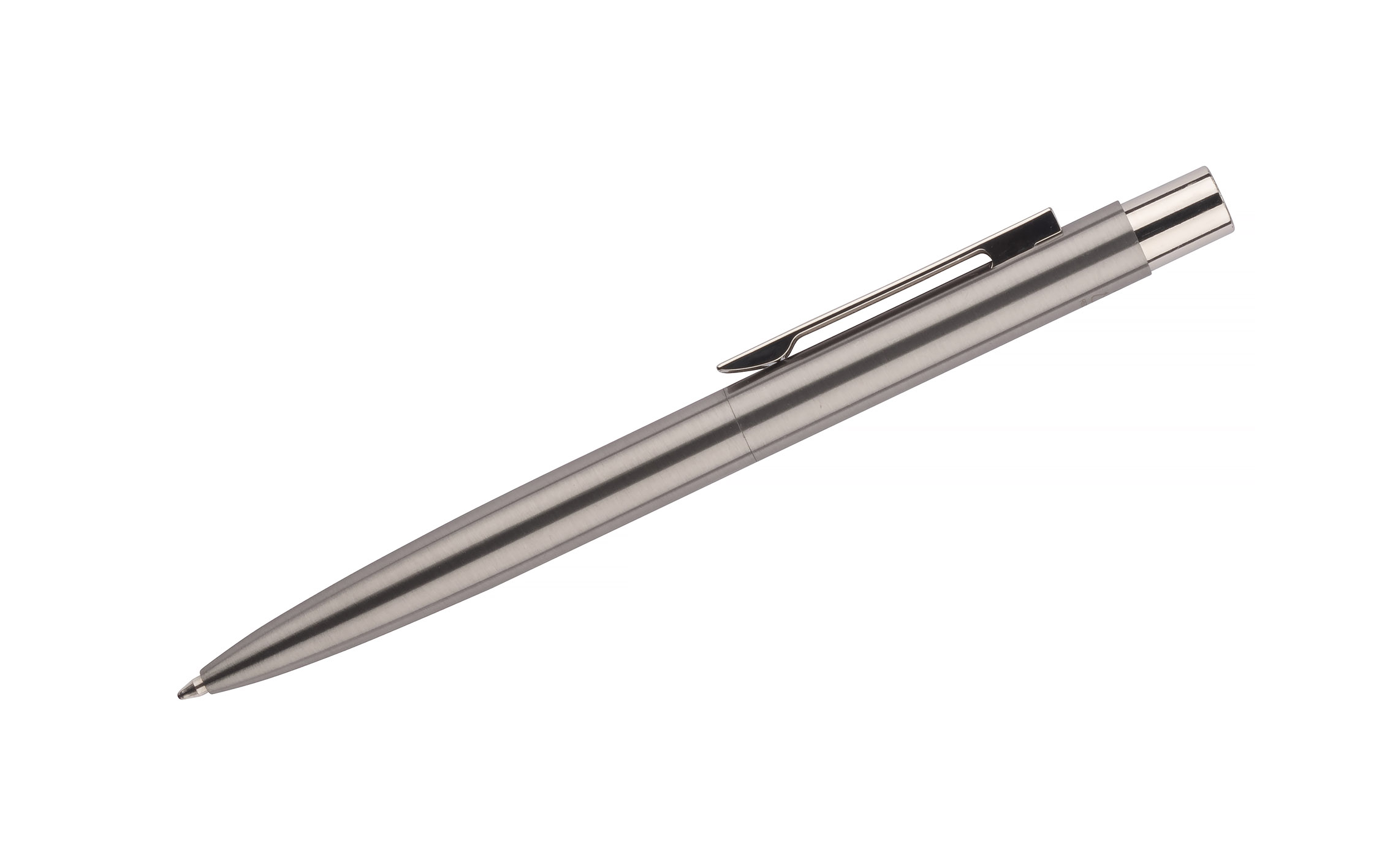 The DELOX ballpoint pen looks extremely elegant. Made of recycled stainless steel. Blue refill.
