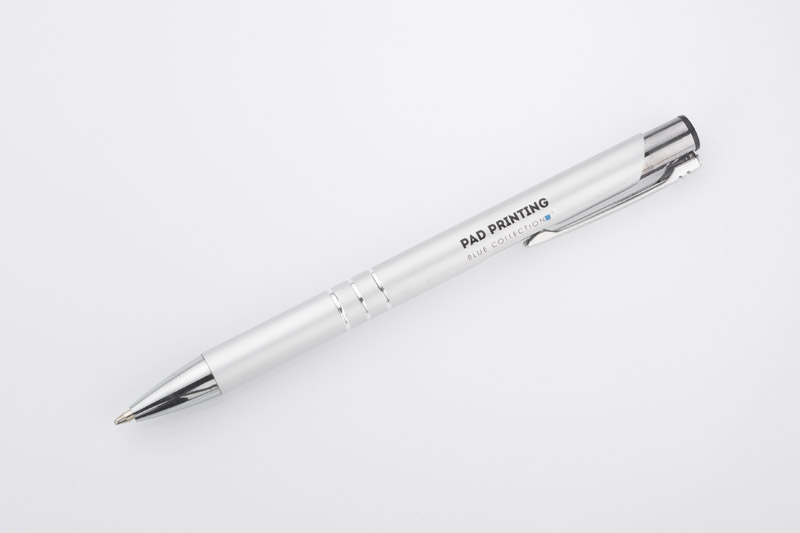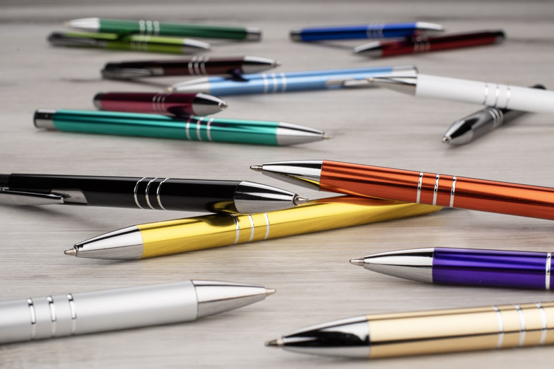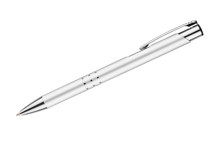 Popular metal ball pen with a metalized surface. It's an automatic ball pen with 3 rings. Individually packed into polybag. Logo might be engraved on the pen's body.