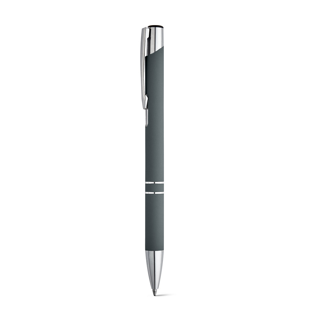 Aluminium ball pen with coloured body and rubber finish. Black ink. ΓΈ10 x 137 mm