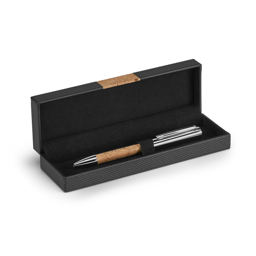 Cork and metal ball pen inspired by the cork oak. Ball pen with twist mechanism and clip. Supplied in a gift box with cork detail. ΓΈ11 x 137 mm | Case: 180 x 56 x 30 mm