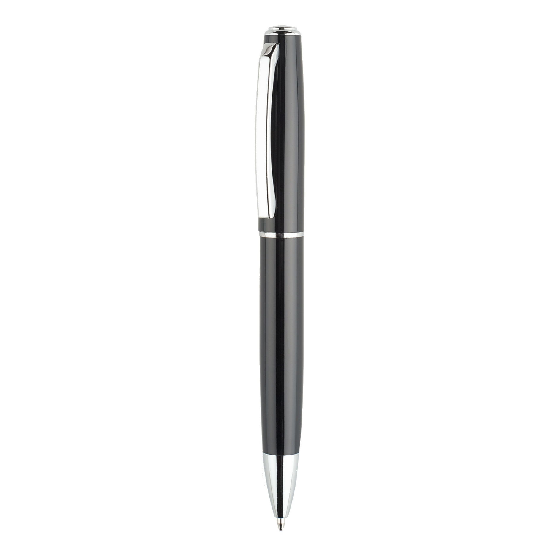 An elegant metal pen, made of metal with a shiny varnished surface. Wide clip is ideal for applying the customer's logo. Twist open and close mechanism. German quality ink, enough for many meters of writing.
