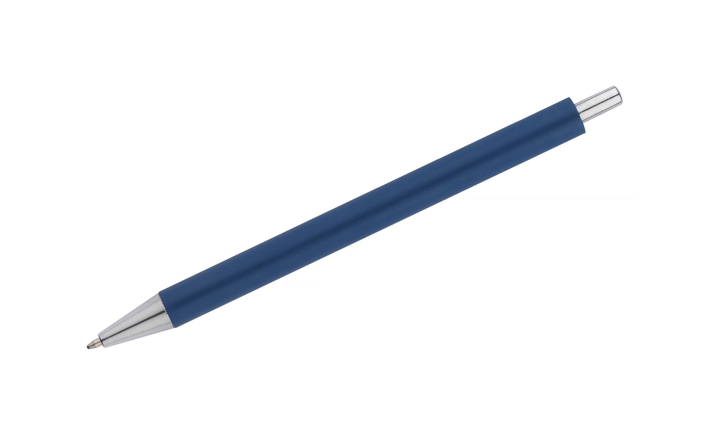 NOVI ballpoint pen finished with a pleasant-to-touch rubberized surface with silver-colored chrome elements. Blue refill.