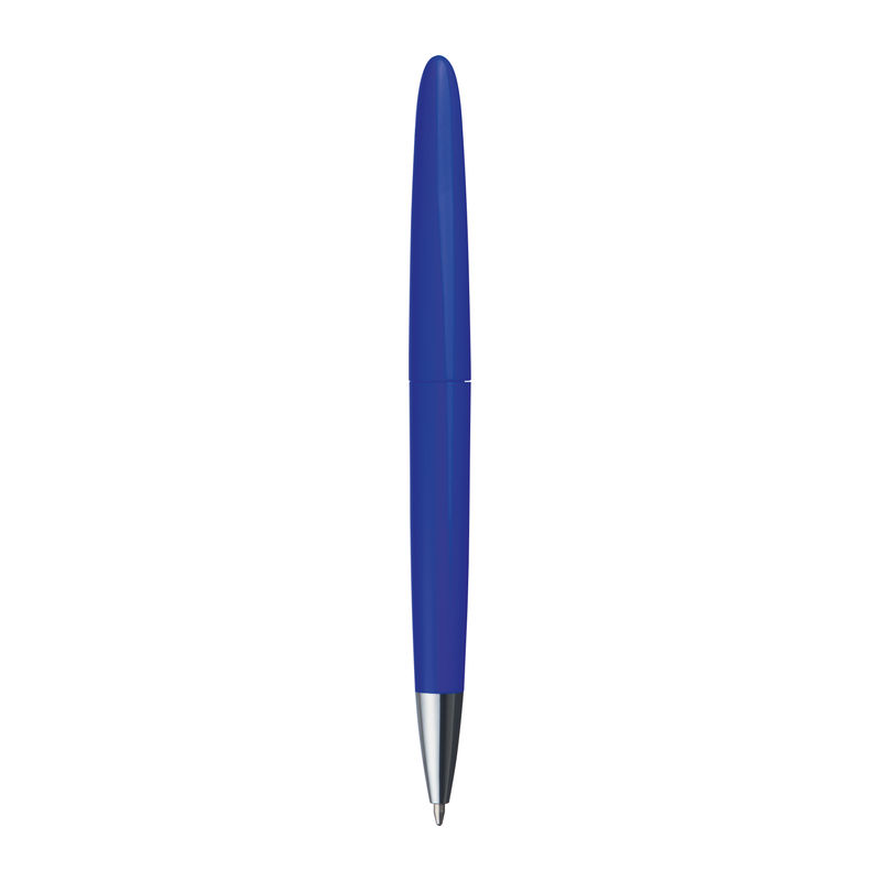 Plastic ballpen featuring a rotating mechanism and a blue-ink plastic refill.