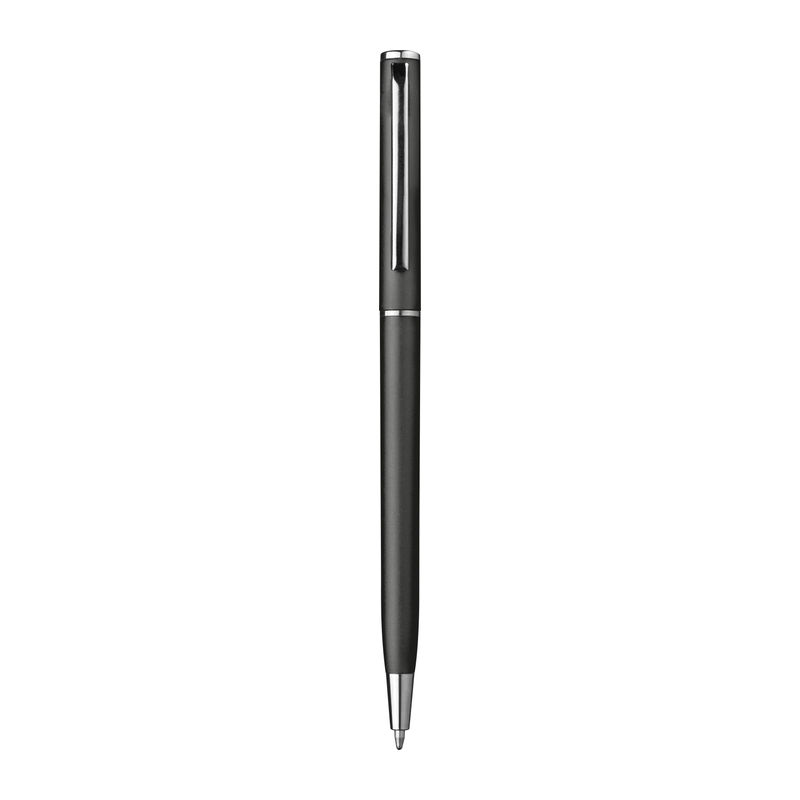 Twist mechanism ball pen made of plastic with blue-writing refill. Thanks to its slim shape, this ball pen is perfectly suitable for notebook loops. We will print your logo to the right of the clip.