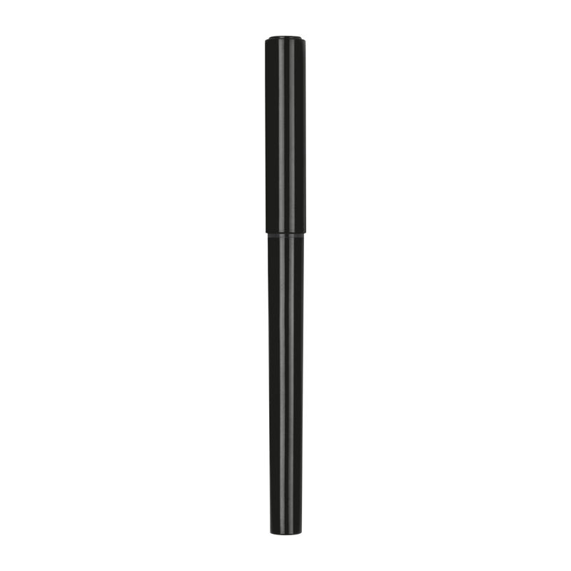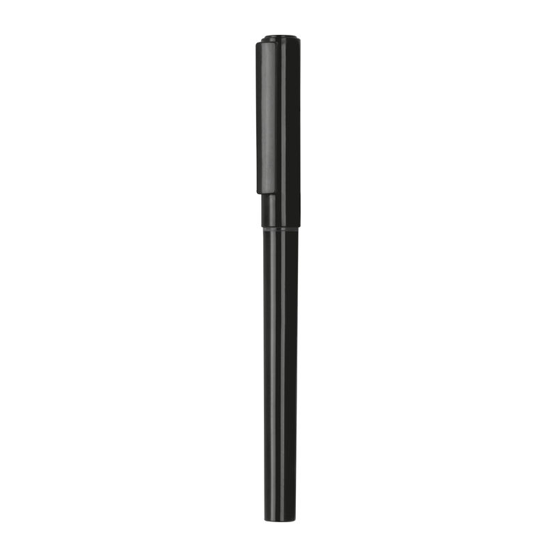 Plastic rollerball pen with lockable cap, plastic clip and large blue ink cartridge. Your logo is printed to the right of the clip.
