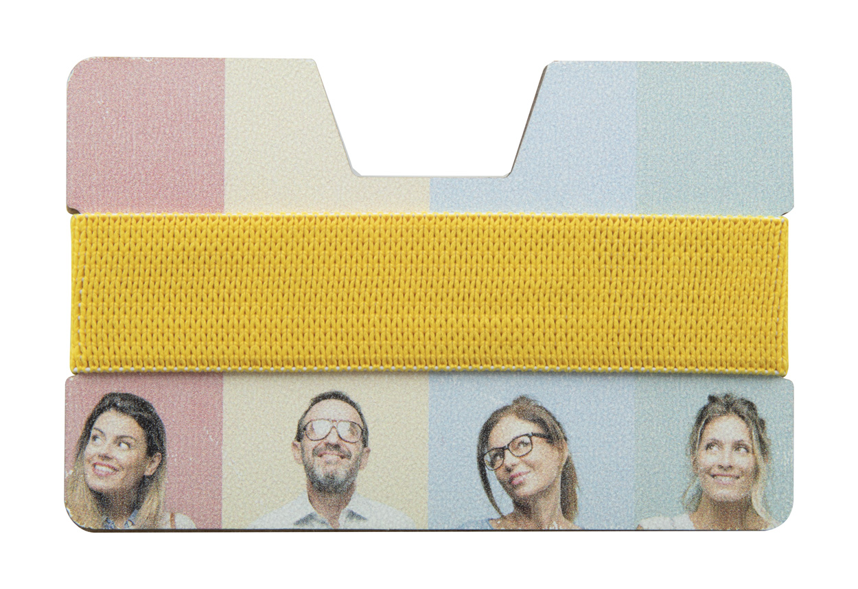 HDF wood card holder wallet with elastic rubber strap. Ideal for UV LED printing.