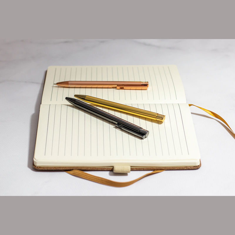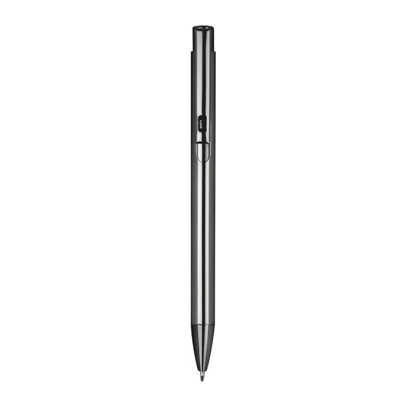 Aluminium ballpoint pen in shiny metallic colours. We engrave your logo to the right of the clip.