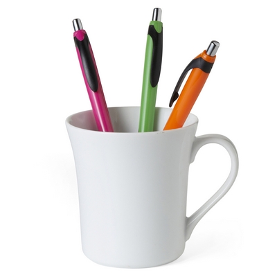 Ball pen with coloured barrel, black grip and clip