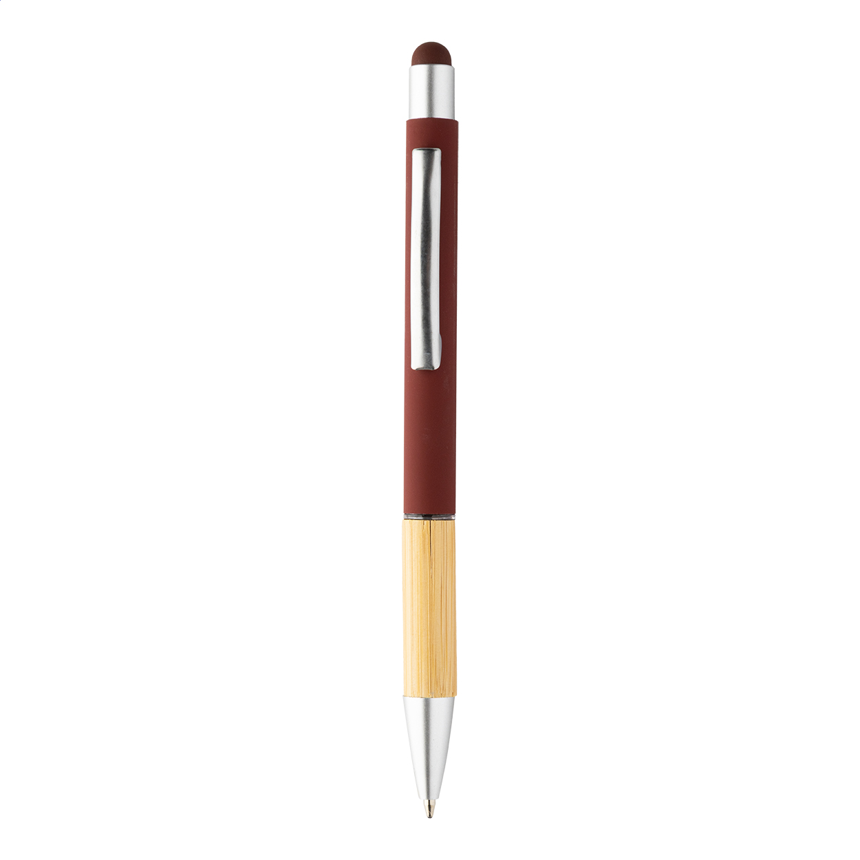 Aluminium ballpoint and touch screen pen with bamboo grip and matte finish. With blue refill.