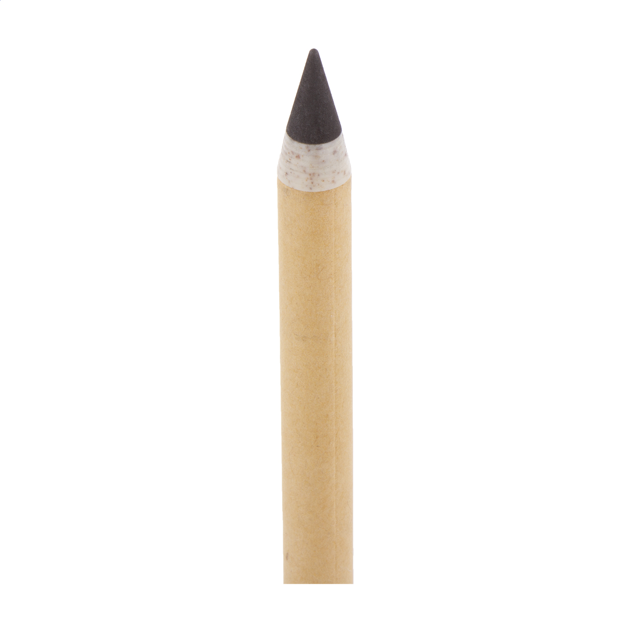 Recycled paper long lasting inkless pen with matching colour cap. With wheat straw plastic and metal alloy tip, which oxidizes the paper. This pen writes similarly to a pencil, and it is also erasable.