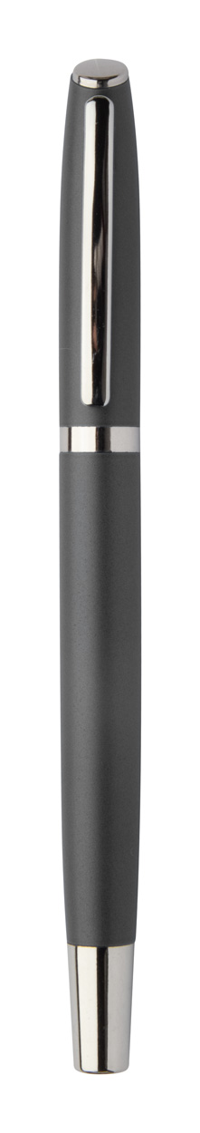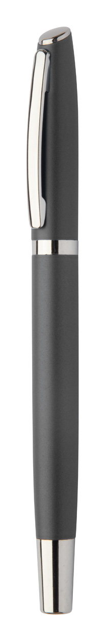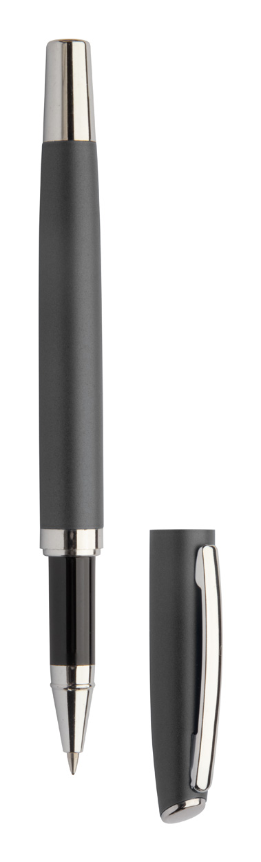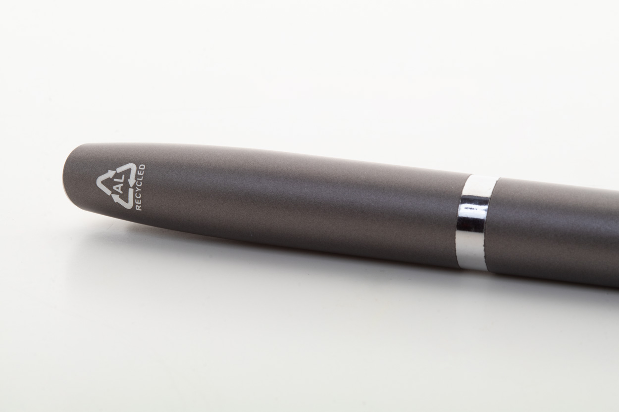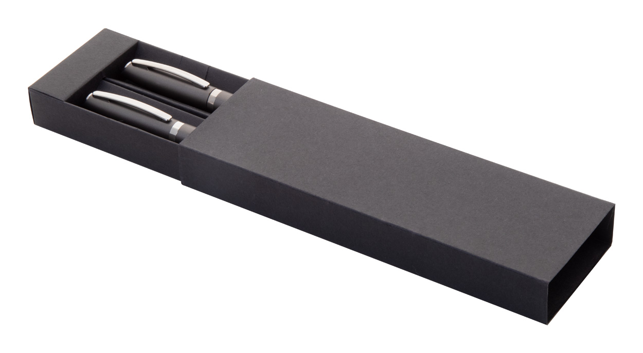 Recycled aluminium pen set with roller and ballpoint pen in black paper gift box. With blue refill.