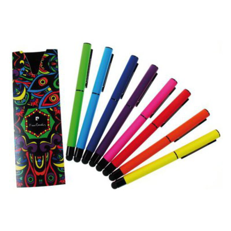 Roller has black details, the tip protecting the pen tip and stylus, contains a blue refill Schneider. Packed in Pierre Card