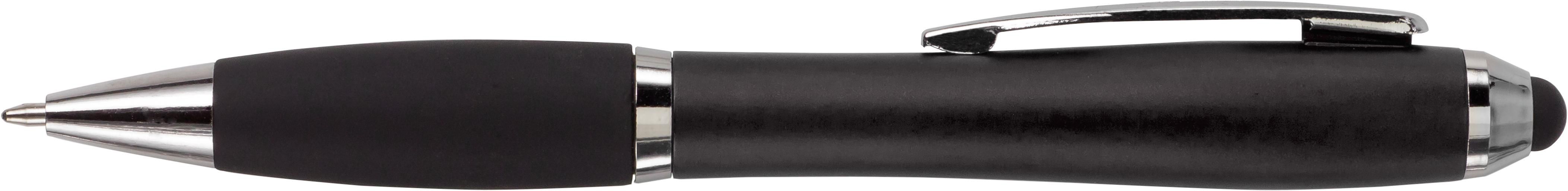 ABS and metal ballpen with rubber grip and rubber tip suitable for capacitive screens. Black ink.