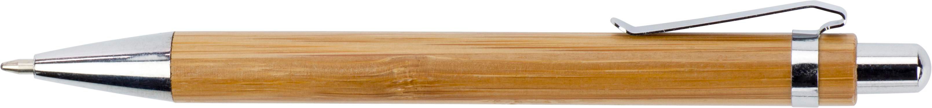 Bamboo ballpen with metal clip. Blue ink.